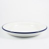 De emaille schaal is helemaal wit met een zwarte bovenrand. De eenvoud van deze schaal maakt de schaal bijzonder mooi! Inhoud: 9 liter / 9000 ml.